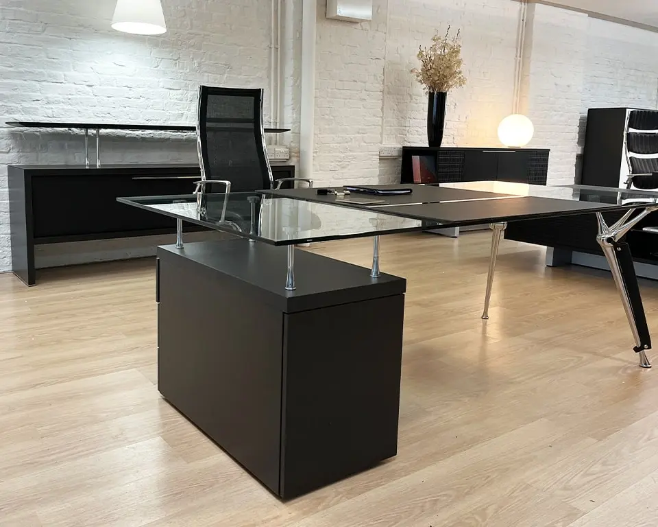 First of all you can select our striking glass executive desks as large rectangular desks with drawers. Then as an alternative you can also have them as L- shaped desks.