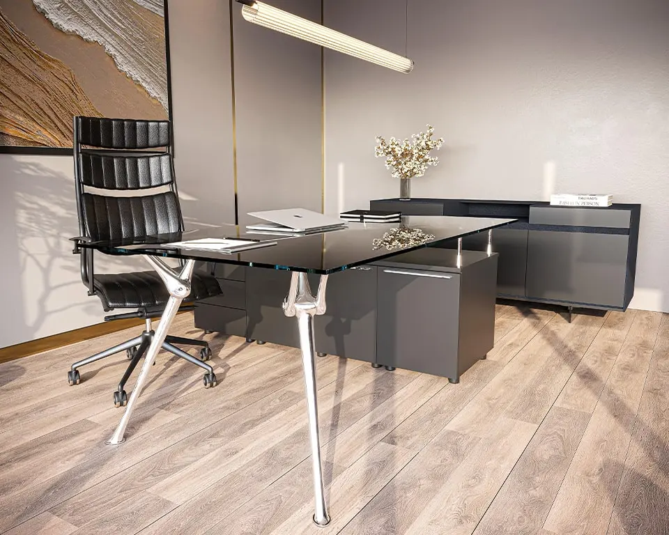 As an alternative you can also have an L- shaped glass executive desks with additional storage at your finger tips.